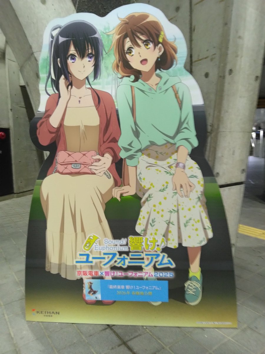 京阪宇治駅ホームのコラボデザイン駅名標と、コンコースの等身大パネル(久美子&麗奈)。 たまには雨の宇治も、いいもんだね~。☔ #京阪電車 #京阪宇治駅 #宇治市 #響けユーフォニアム #くみれい #黄前久美子 #高坂麗奈 pic.x.com/Nm2HOA1wkX