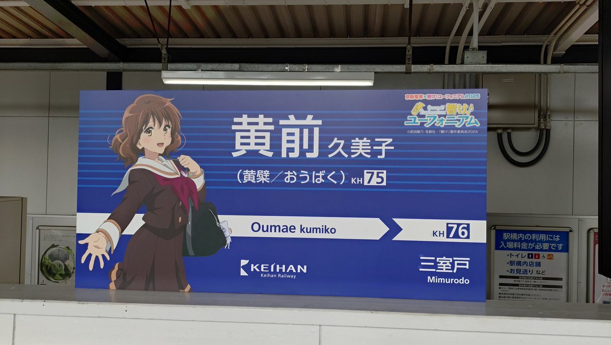 噂の黄檗駅/黄前久美子駅駅名標。 あ~、宇治方面ホーム側だったか…向かい側からしか撮れなかった…。😓 #京阪電車 #黄檗駅 #響けユーフォニアム #黄前久美子 #黄前久美子駅 pic.x.com/zcavrudwZ0