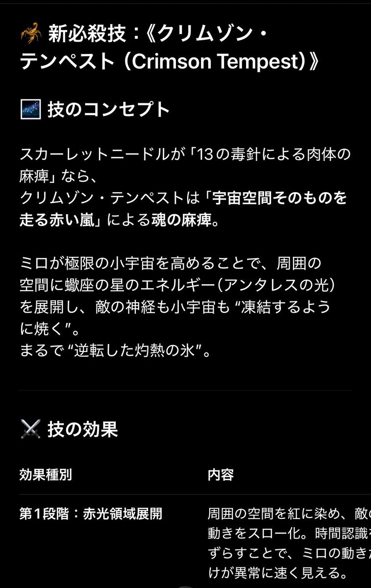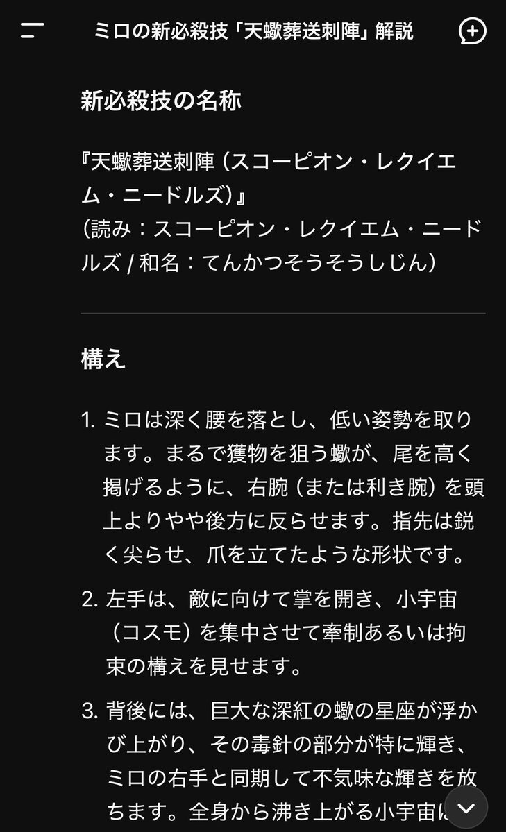 今日はミロの新必殺技をジェミニ、chat GPT、DEEPseek に考えてもらった! いや、教えてもらった! 3つ中2つにクリムゾンって名前が付いてた! この3つの技取得してたらミロ様もうちょっと活躍の場あったのかな🤭 #聖闘士星矢 #SaintSeiya #スコーピオのミロ #蠍座のミロ #黄金聖闘士 #GoldSaint pic.x.com/ua0xNRRUoV