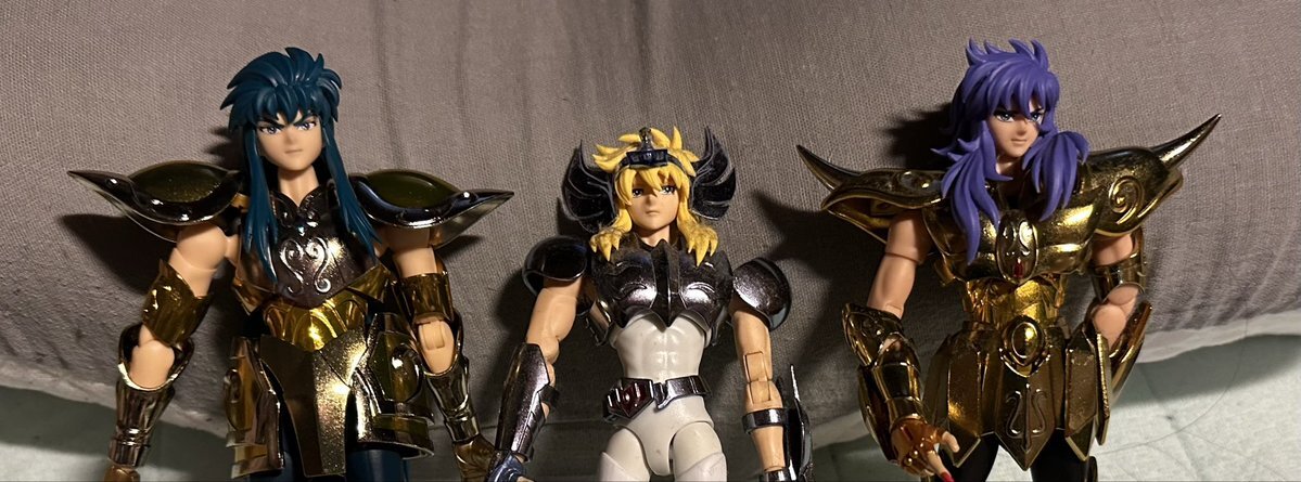 ミロ♏とカミュ♒️のヘッドギアは万が一の時のために付けてないけど、氷河🦢は付けないとしっくり来ないので付けてる(笑) このメンツ揃ってホッとしてます (*´∀`)-3 #聖闘士聖衣神話 #カミュ #氷河 #ミロ #黄金聖闘士 #青銅聖闘士 pic.x.com/AnJC3BtRzb