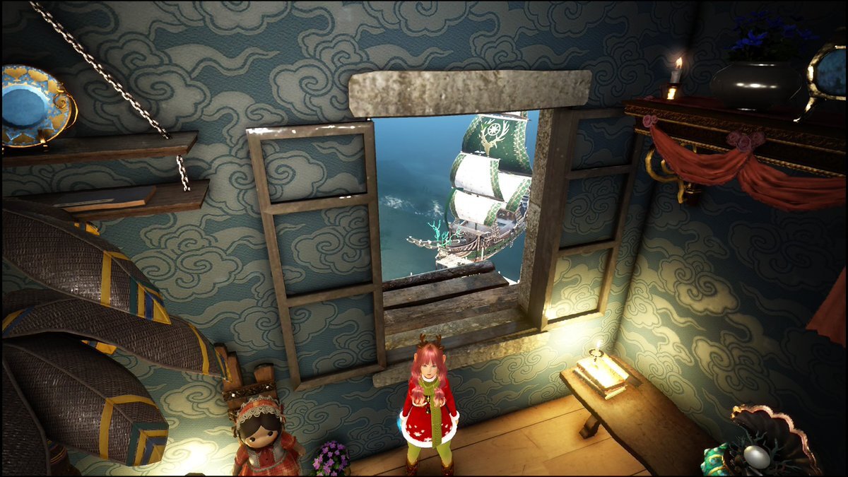 イリア島の家にイベント🎄ライト配置 窓から見える鹿の船 この家は癒し 呪いの椅子17/35 あと9882クロンか #黒い砂漠_CONSOLE pic.x.com/XM9hSqYwGj