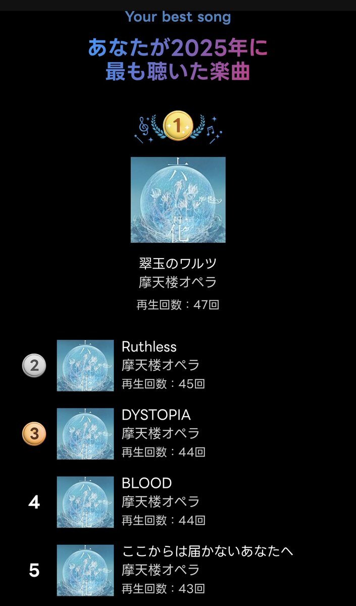 由詩は、SpotifyじゃなくLINE MUSIC派🙋♀️ 今年のまとめが来たら、なんと摩天楼オペラが1位だった❤️ LIVE参戦はあまりしてないけど、昔から好きだからね🫶 黒夢とJanneが2位と3位なの納得w #摩天楼オペラ #黒夢 #JanneDaArc pic.x.com/ME0mSVdX8n