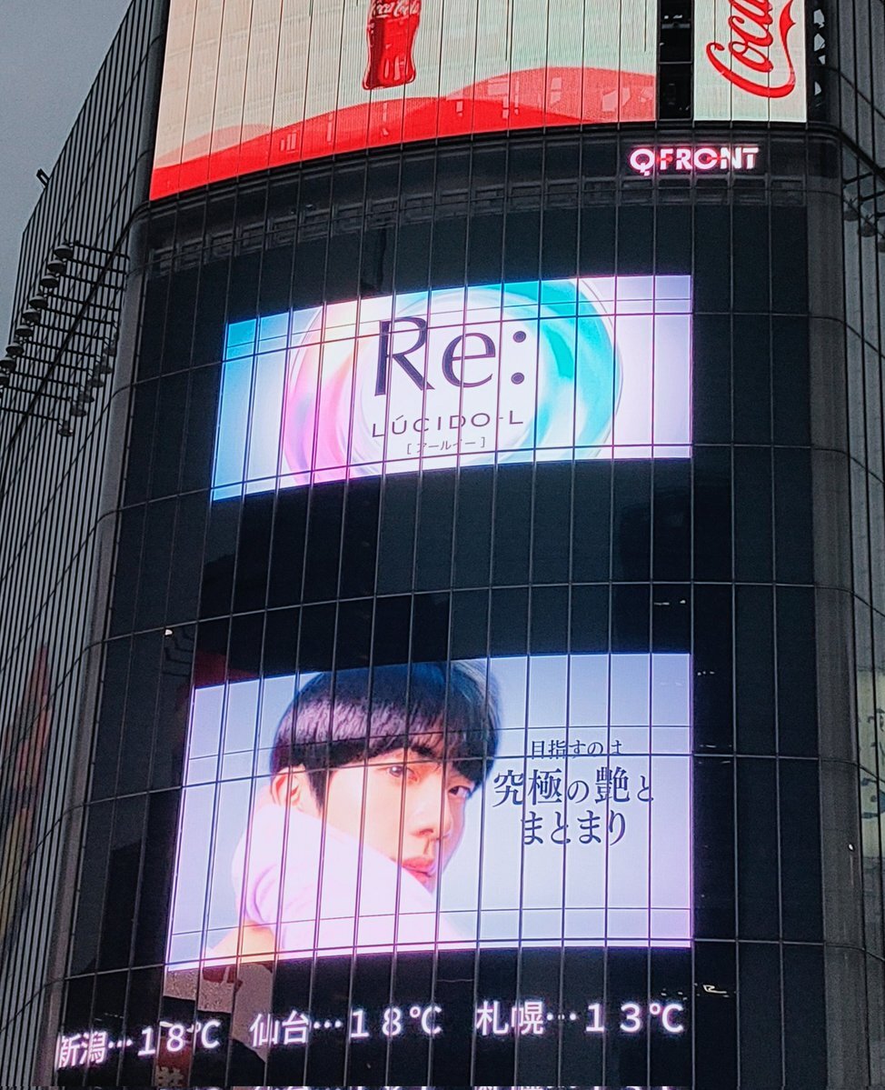 渋谷上陸したとたんジンくんの声がーー‼️スクランブル交差点のでっかいスクリーンに見慣れたお顔がドーン😍グループではなくジンくん一人で渋谷に降臨してるのよくよく考えると何だか感慨深い。ジンくんありがとう。きっとイルアミが喜ぶの分かってたんだよね✨ #Jin #석진 pic.x.com/guqGdUf4je