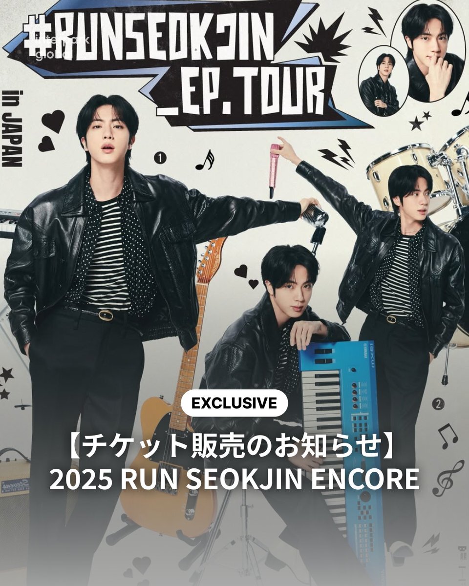 🚨【チケット販売スケジュールのお知らせ】 2025 RUN SEOKJIN EP.TOUR ENCORE 🗓️ チケットスケジュール ファンクラブ先行予約: 2025年10月20日 (月) 20:00 (KST) 一般発売: 2025年10月21日 (火) 20:00 (KST) 🗓️ 公演スケジュール 2025年10月31日 (金) – 11月01日 (土) 📍 仁川文鶴競技場