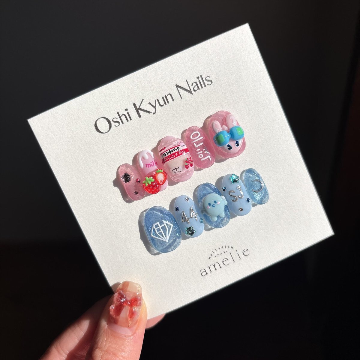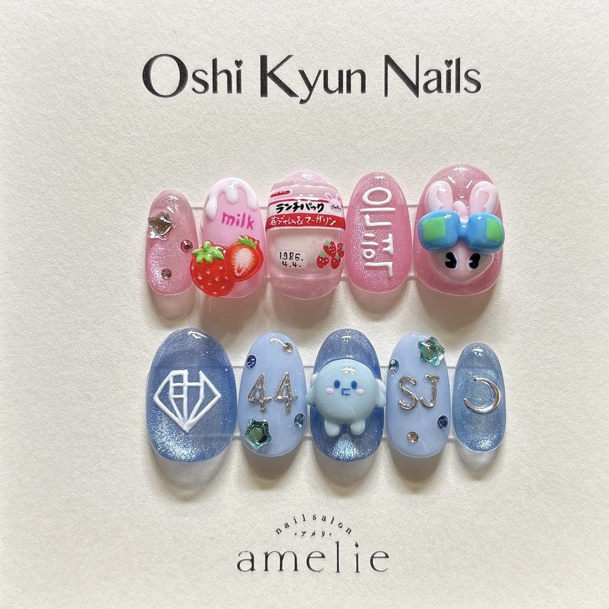 SUPER JUNIOR ウニョクさんの ネイルチップを作らせていただきました🐰🌙🍓 ありがとうございました💙 このランチパックは、褒めてください🥺笑 #SUPERJUNIOR #SJ #ウニョク #은혁 #Eunhyuk #ネイルチップ #推しネイル pic.x.com/0FmWZXoc2F