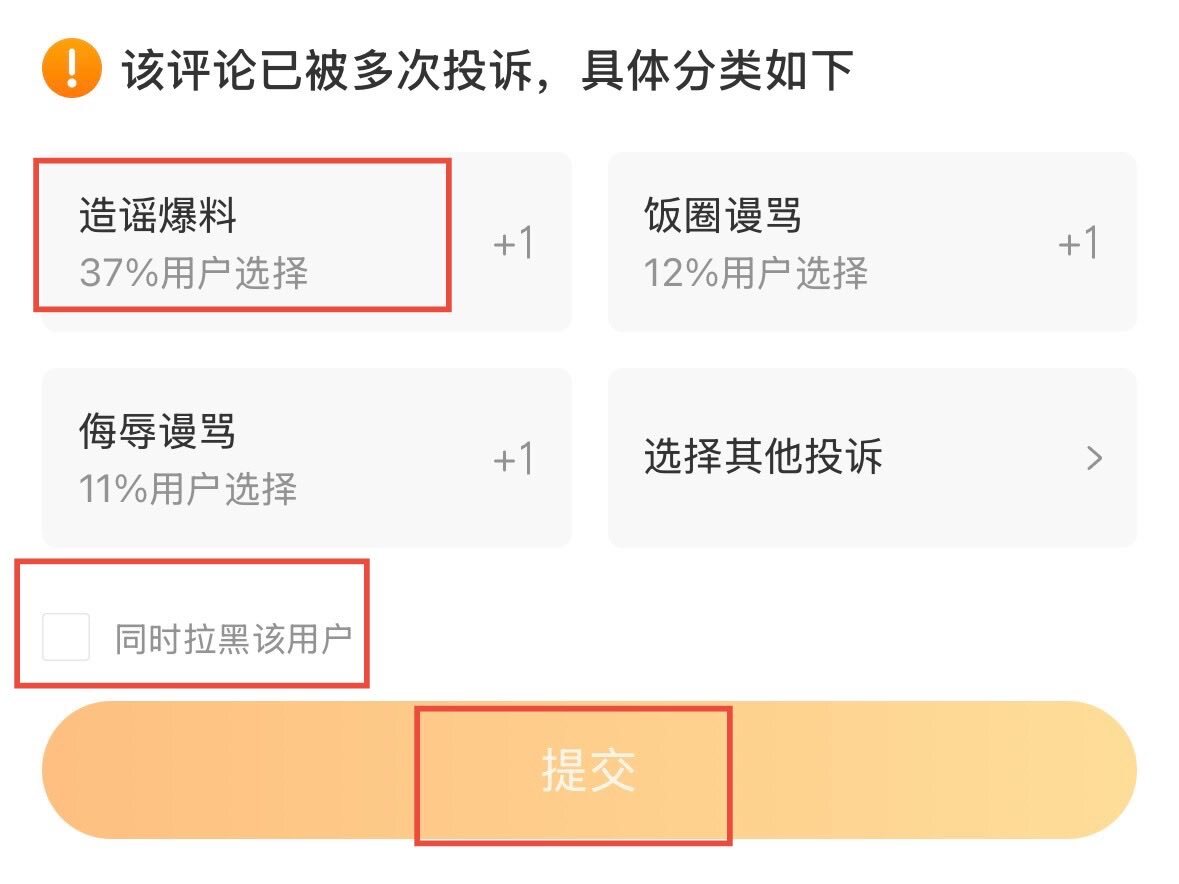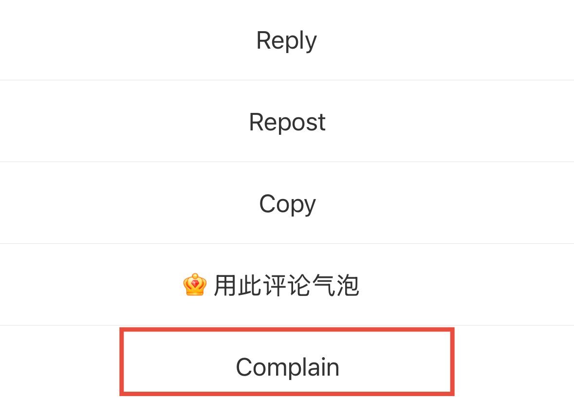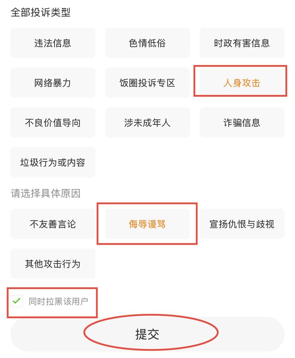 ⚠️ วิธี report ใน weibo ตามรูป 1. กด comment ค้าง 2. complain 3. 人身攻击 (personal attack) 4. 侮辱谩骂 5. ✅ 同时拉黑该用户 (block) 6. 提交 (submit) หรือถ้าขึ้นแบบรูปสุดท้ายกดตามรูปเลยค่ะ SUE ALL JUNHUI ANTIS #XCSSProtectJunhui #JUN # #文俊辉 @pledis_17 @pledis17_STAFF pic.x.com/HlBTb80zQe