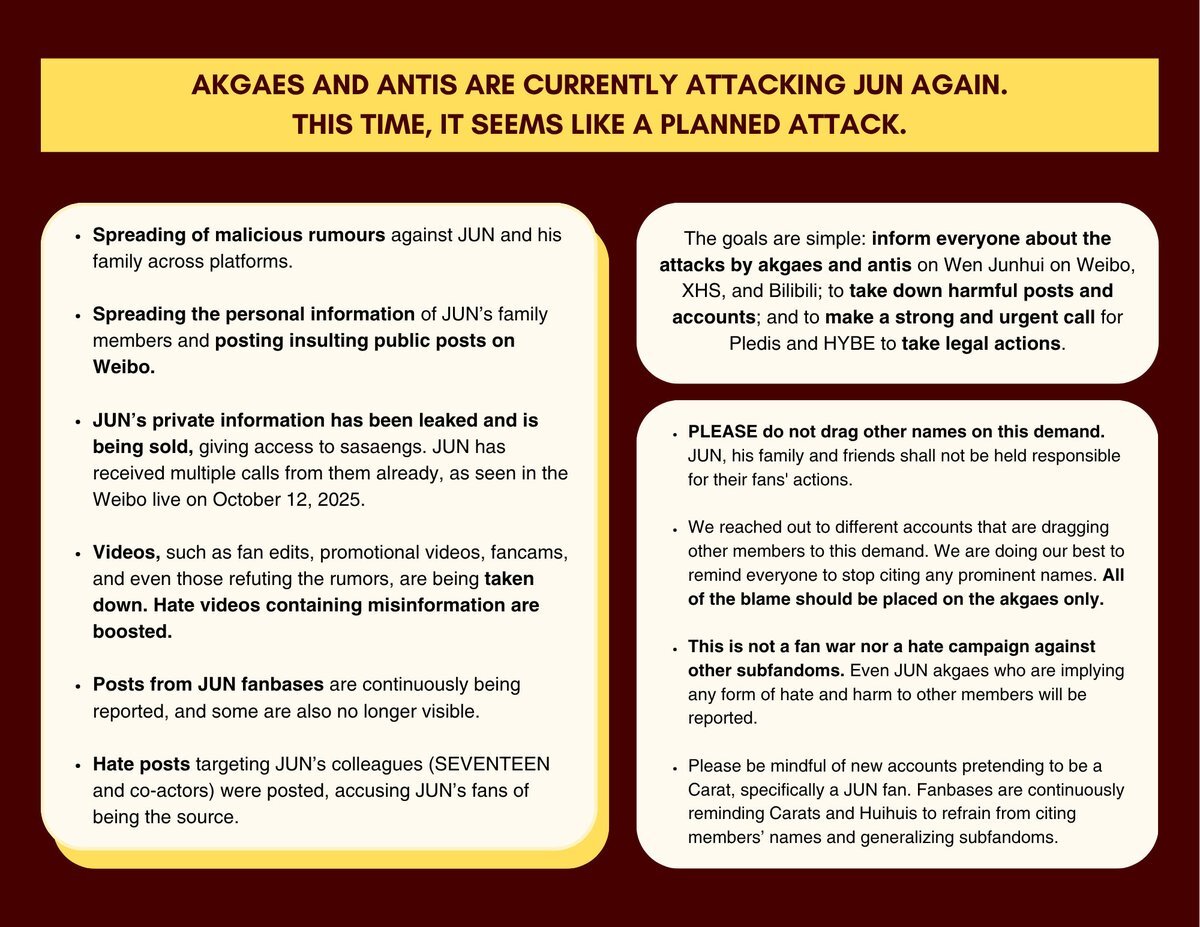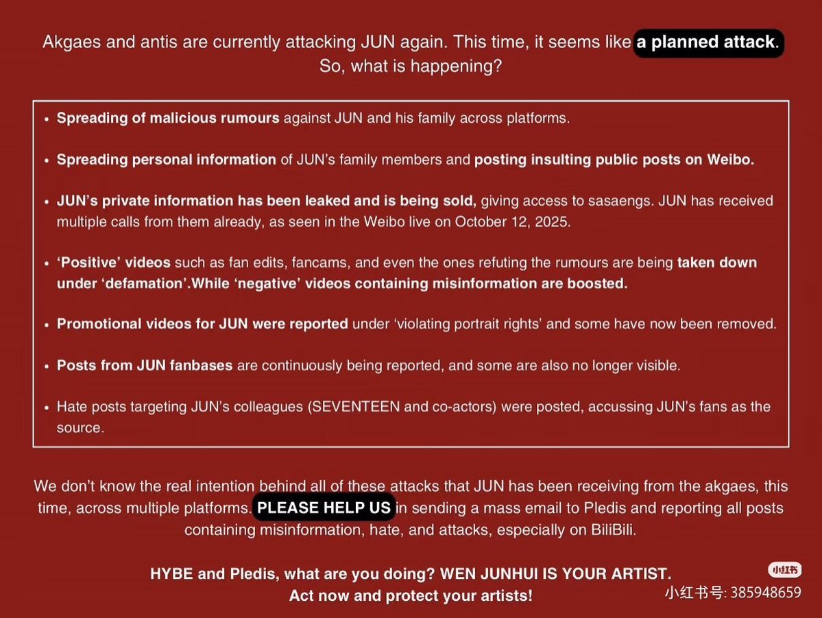 Pledis and HYBE please take the fans' demands seriously and take immediate action. SUE ALL JUNHUI ANTIS #PledisTakeLegalActionForJUN #JUN #준 #文俊辉 @pledis_17 @pledis17_STAFF
