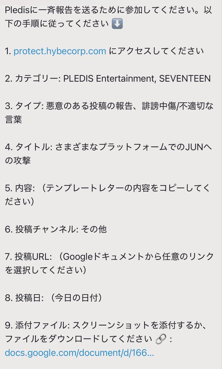 ハイブへの報告をよろしくお願いします😭🙏🙇‍♀️ ⇒ protect.hybecorp.com 5、のテンプレ内容は②か③(日本語) 6、投稿チャンネルやURLは引用元のGoogleドキュメントから探してください。weiboの投稿等。 SUE ALL JUNHUI ANTIS #XCSSProtectJunhui #JUN #준 #文俊辉 @pledis_17 @pledis17_STAFF x.com/moonjunhuiph/s…