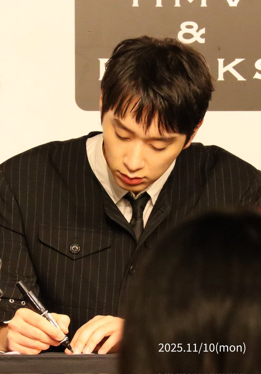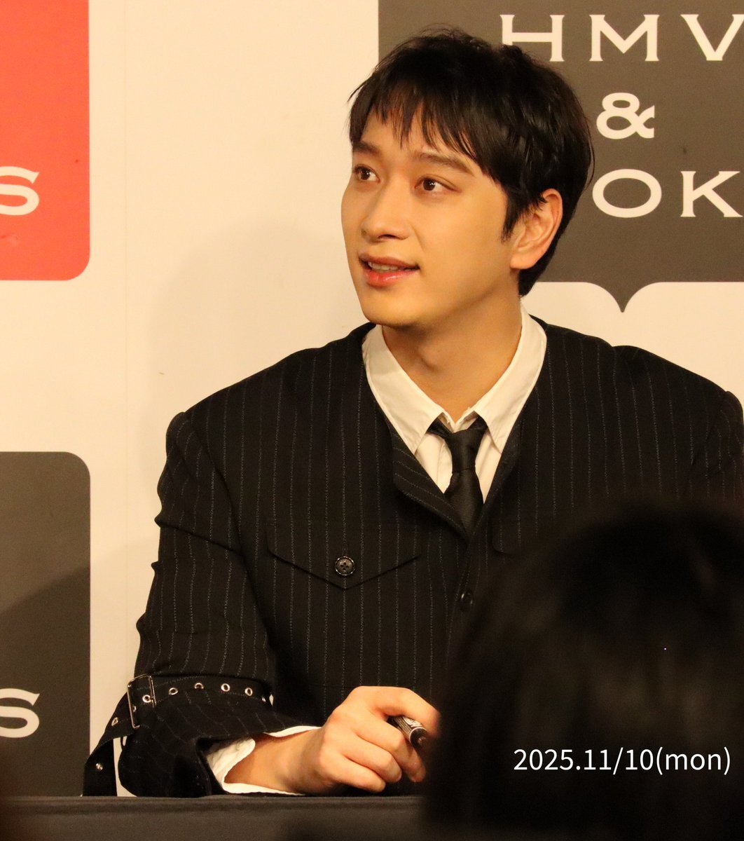 名前を呟きながらサインをするチャンソン✨伏し目がちのお顔も素敵でした☺️💕 #チャンソン #찬성   #HMVオフラインサイン会 pic.x.com/fEu04E9WRI