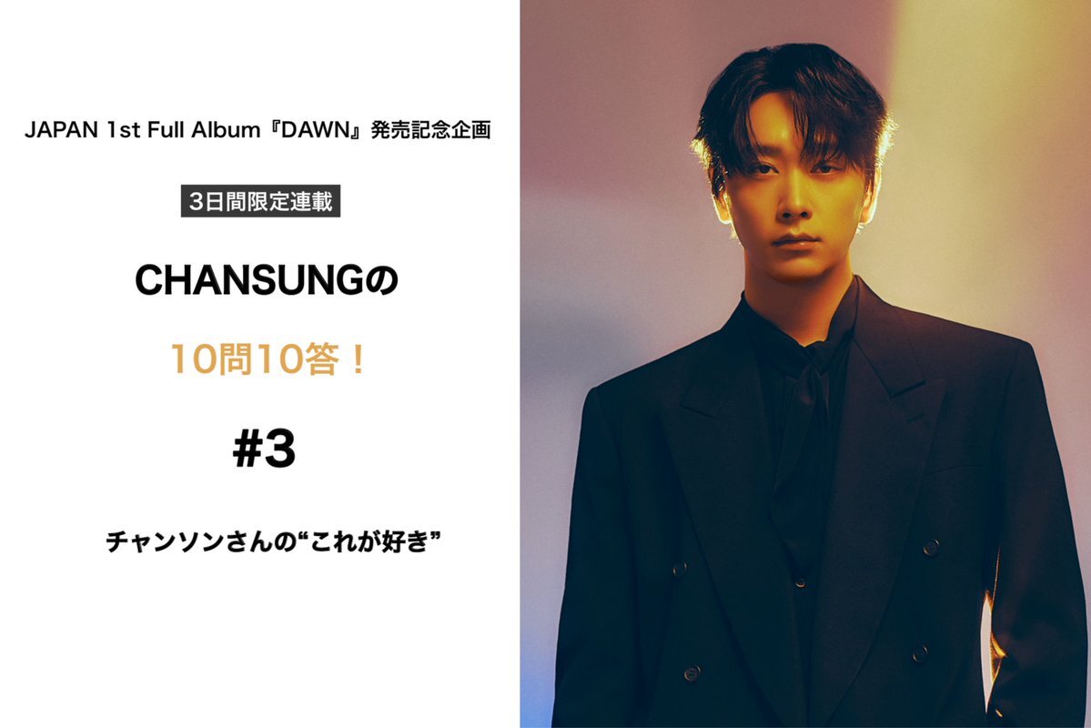🎊#CHANSUNGの10問10答企画🎊 #3 ─#チャンソン ’s ANSWER─ Q7. ご自身の好きな曲は? A. 今回、自分で作詞・作曲を手がけた「Tell Me Your Reason -JP Ver.-」という曲があるんですが、やはり一から作り上げた分、特別な思い入れがありますね。 Q8. 好きな言葉は? A.