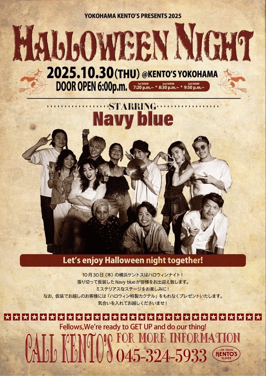 10/30(Thu) Navy blue Halloween Night at KENTO'S Yokohama 全力で仮装して演奏するので 全力で仮装してお楽しみ下さい👻 #Navyblue #DISCO #RnB #SOUL #ROCK #POP #80s #90s #00s #KENTOS #Yokohama #ケントス横浜 pic.x.com/7wafUDYDjf