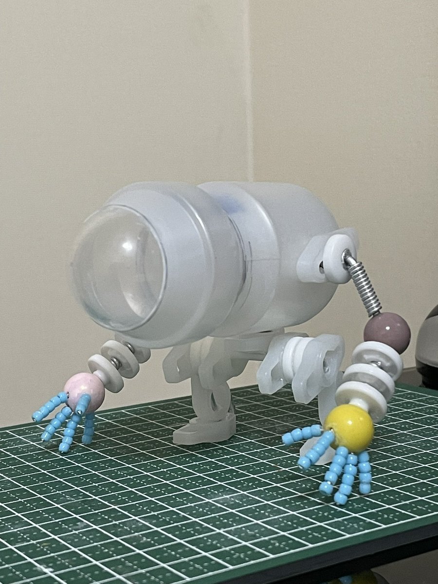 100均のワンタッチホックとビーズ大小で ヤクルトロボの腕、手を作りました🤓 #ヤクルト容器 #オリジナルロボ #100均DIY pic.x.com/Te89I4z0BK