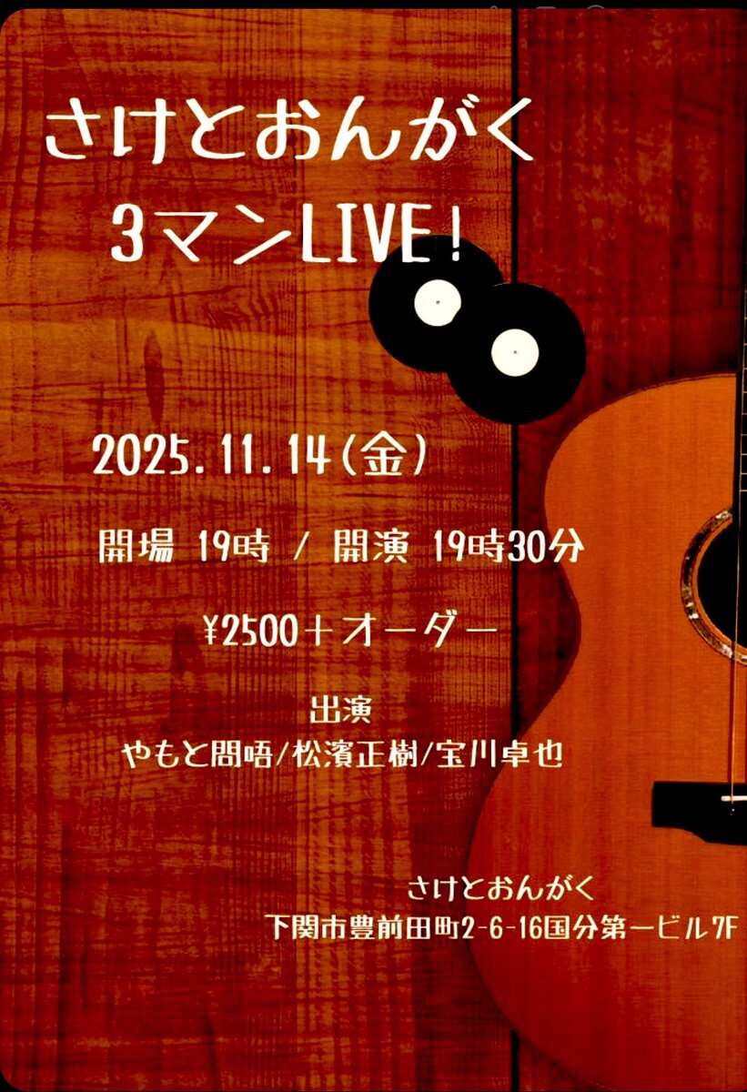 11/14金 #下関 #豊前田町 さけとおんがく (#山口県 #下関市 豊前田町2-6-16 国分第一ビル 7F) w/松濱正樹・宝川卓也 開場19:00/開演19:30 ライブチャージ2500円(オーダー別) ⭐️ご予約承り中⭐️ #馬関 #11月14日 #花金 #ライブ #弾き語り #7弦ガット #7弦ギター #オリジナル曲 #2025年 #歌う物体 x.com/strider5162512…