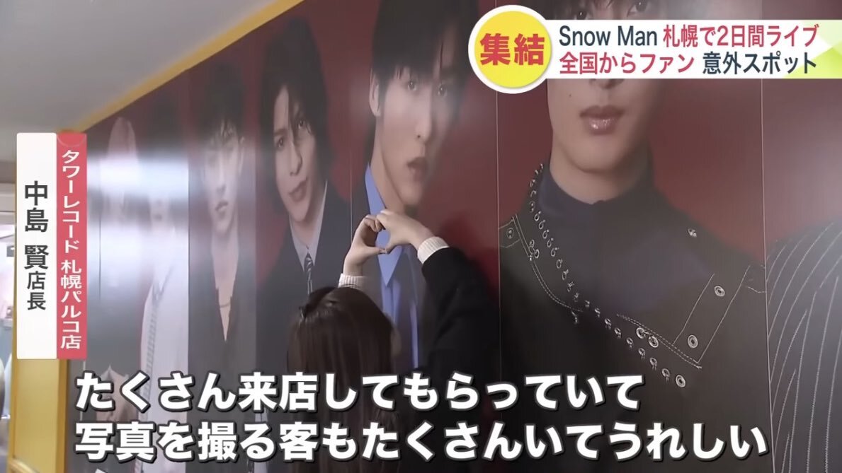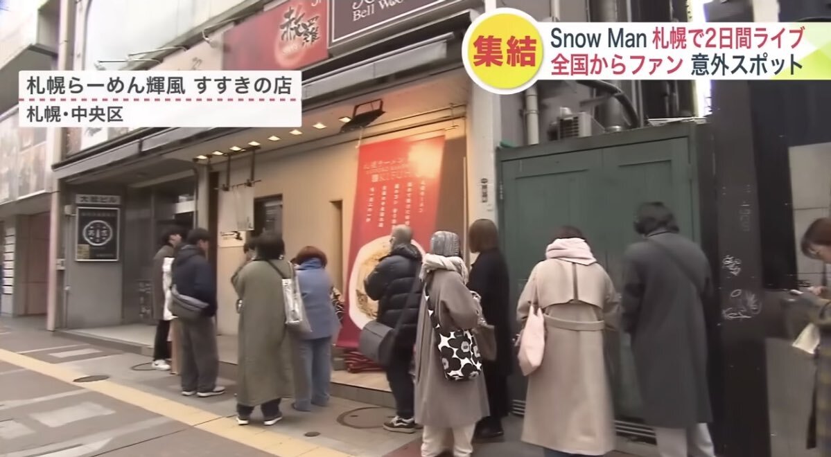 #11月14日 札幌市内でSnowMan経済効果。メンバーが昨年のケータリングで食べていたという「らーめん輝風すすきの店」に大行列。発寒神社には「カラフル雪だるま御朱印」を求めて多くの参拝者が。さらに、タワーレコード札幌パルコ店には「写真を撮る方が増えた」と店長は語る youtu.be/jBXU4KXxaBw?si… pic.x.com/sDrNmfIbQu