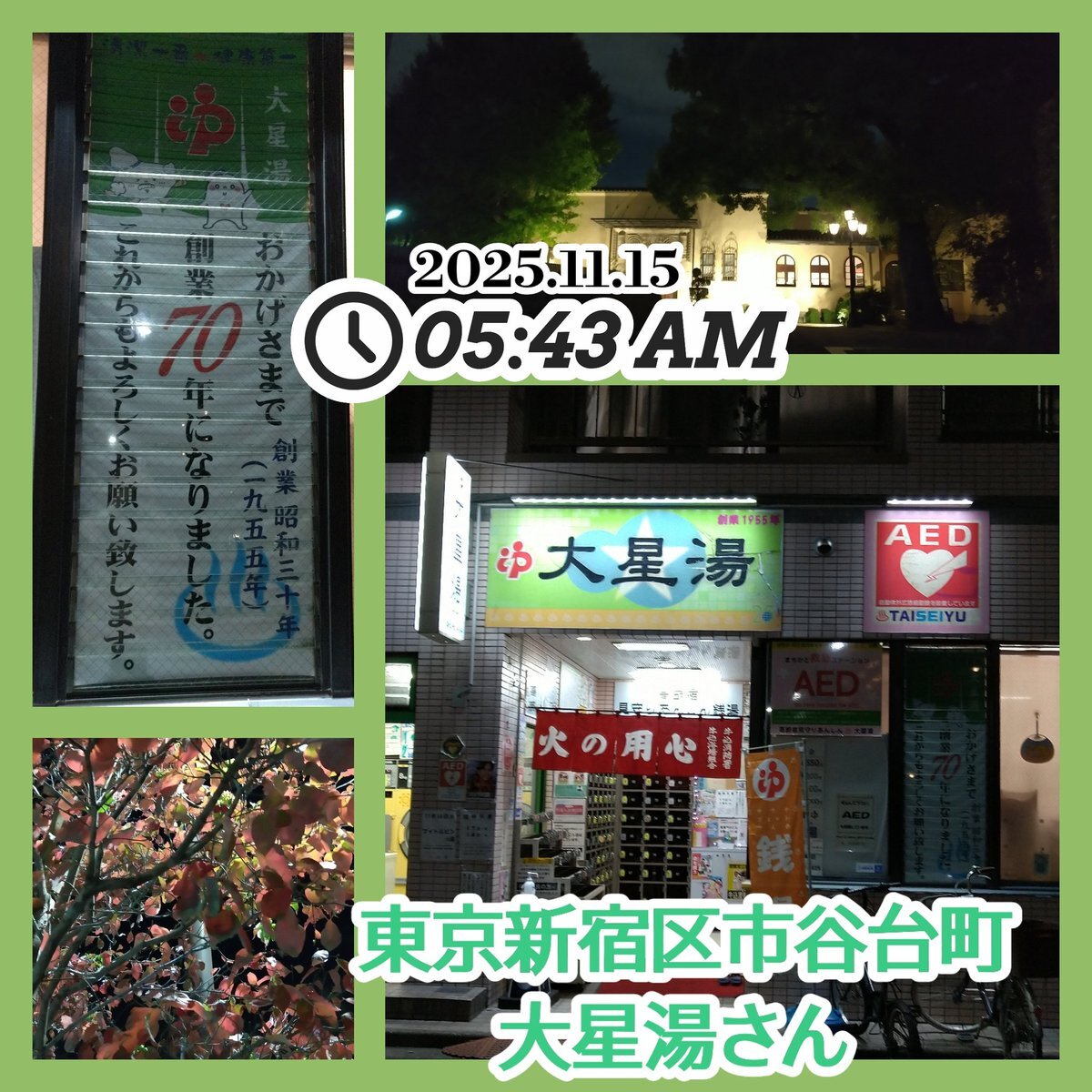 若松河田駅。余丁町通りを歩いて #大星湯さん 。井戸水を利用のお風呂は木酢の柔らかな香りがして、ゆったりも。サウナは午後9時までの運転で、8時に入店したため、1時間集中して満喫。肩まで浸かる水風呂で凍めて、脱衣場で休憩を。その後、ジェットバスでもゆったり浸かりゆったり過ごせた #11月14日 pic.x.com/8JspKfo3r0