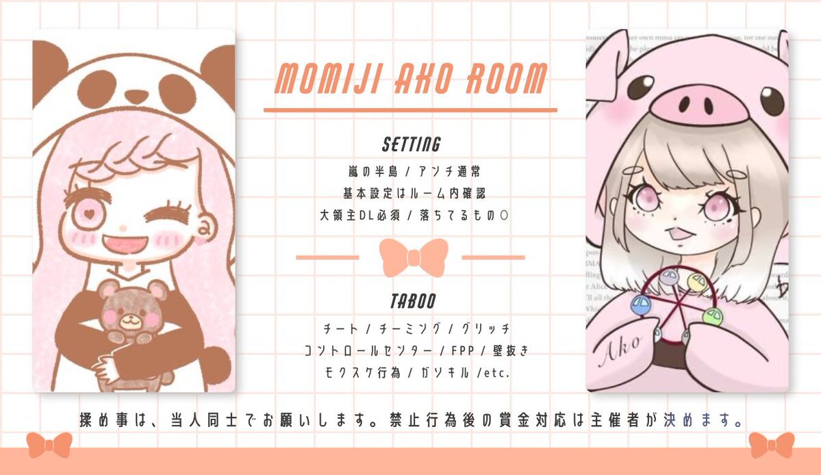 🎡Ako ×🍁Momiji 𝙍𝙤𝙤𝙢 ⏰ 11/19 23:00 💰 確定 1000×p 一般 500×p 🕊 𝖥𝗈𝗅𝗅𝗈𝗐 & 𝖱𝖳 ❪ 応+参 ❫ ∟ @Ako_7ko @M3g_0_ FF巻きこみ◎ ✐☡ 𝖨𝖣 + 23:00 デュオ 🗝┊justパス→ @M3g_0_ #デュオ #デュオゲリラ #23時