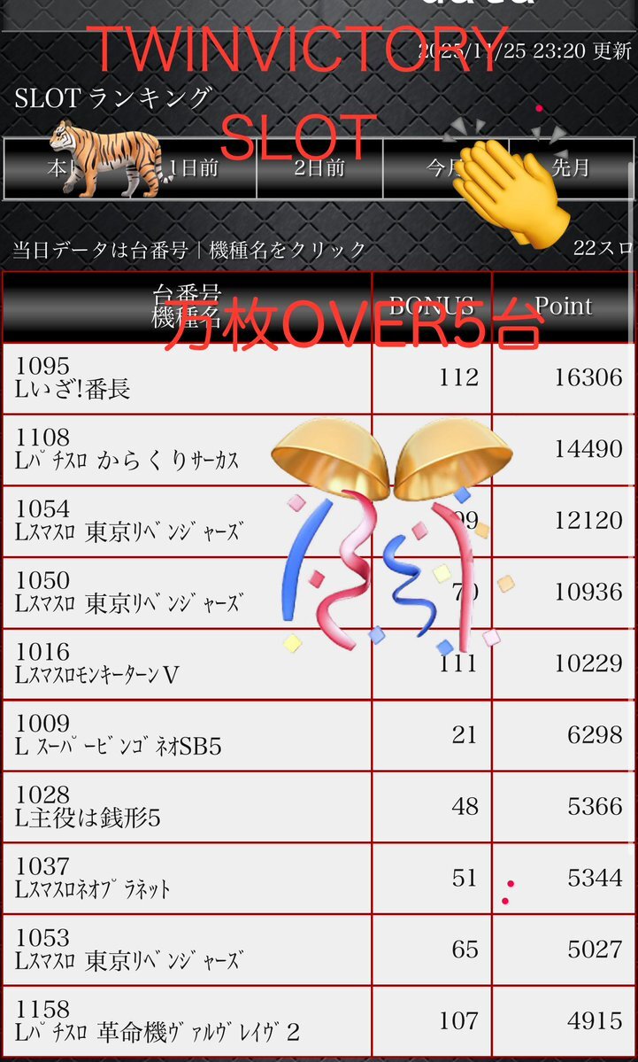 こんばんは 本日もご来店ありがとうございました! #Lモンキーターン 7,600over #L東京リベンジャーズ 6,400over #S沖ドキBLACK 4,900over #Lヴァルヴレイヴ 4,500over その他3,000over多数💥 この日だけは絶対に譲れない! #25日 でした🌈 明日はジャグラーで楽しみましょう🌟 朝一から待ってます🫡 pic.x.com/txaXQDHCEE