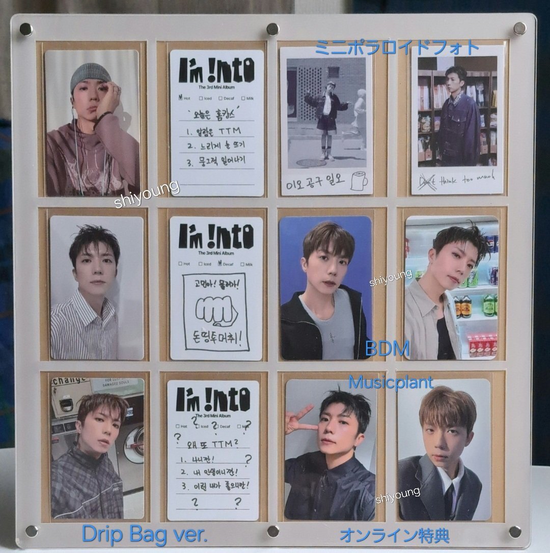 夜勤明けで帰宅して 『I'm into』ランダム封入の フォトカードを飾り直す💙☺️ ver別に表裏と Drip Bag ver.のミニポラロイドフォト そしてONLINE特典の BMDとMusicplant あとポラロイドフォト2種×2枚は どうしようと悩み中…🤔 コンプしたくなるを止められない🤣 #2PM #JangWooyoung #Im_into pic.x.com/1NhtEvlcqz