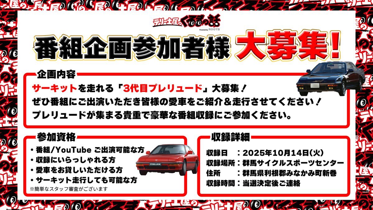 【番組企画参加者様、大募集‼️📷】 今回は、3代目プレリュード大集合! 3代目プレリュードに乗られているオーナーの皆様! ぜひ番組にご出演いただき 皆様の愛車をご紹介&走行させてください! 皆様のご応募お待ちしております📷 forms.gle/QDCVFXMbUEpoA7… #プレリュード #3代目 pic.x.com/GKAYiNzWQf