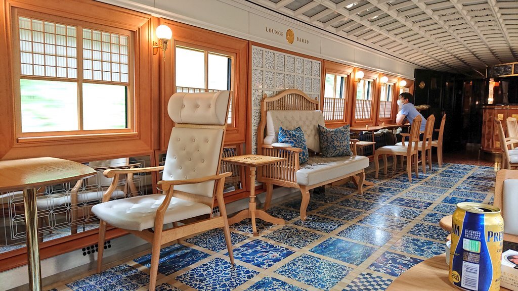 先月に乗車したJR九州の観光列車 これが鉄道車内とは思えないぐらい豪華すぎた! 当車両を利用する方はこのラウンジカーでコーヒーやお酒・おつまみや料理を堪能しながら楽しめます! #36ぷらす3 pic.x.com/Zn8fTCO1FC