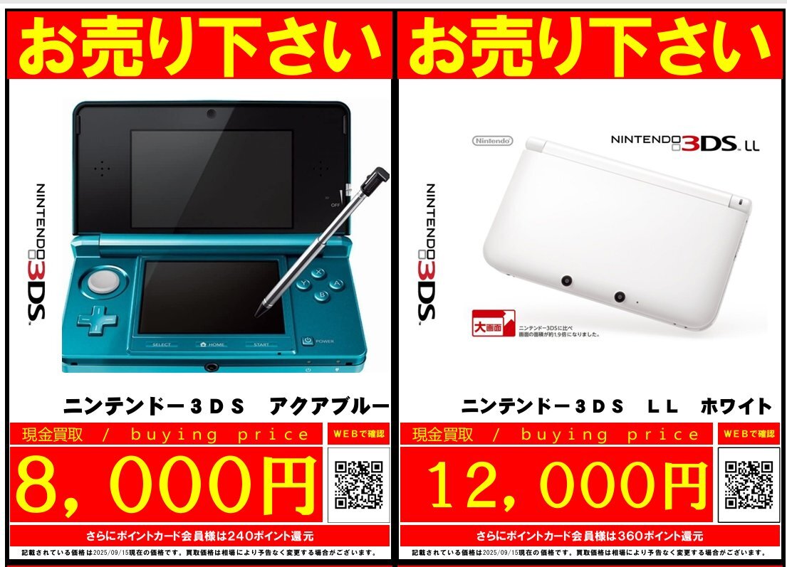 ★#ゲーム #買取 情報★ #3DS 本体 3DS本体 アクアブルー ⇨8,000円買取 3DS LL 本体 ホワイト ⇨12000円買取 NEW3DS 本体 ホワイト ⇨17,000円買取 NEW3DS LL 本体 パールホワイト ⇨18,000円買取 NEW2DS LL 本体 ブラック×ターコイズ ⇨17,000円買取 pic.x.com/ciMO28zMcD