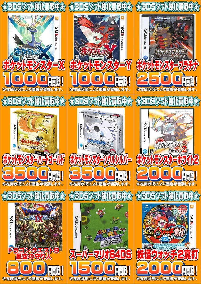 ★#ゲーム #買取 情報★ #3DS イナズマイレブン 1・2・3!! →6500円買取 ポケットモンスター ウルトラサン →2600円買取 ポケットモンスター ウルトラムーン →2200円買取 ポケットモンスター X →2000円買取 リズム天国 ザ・ベスト+ →2600円買取 pic.x.com/4LCN3KtTit