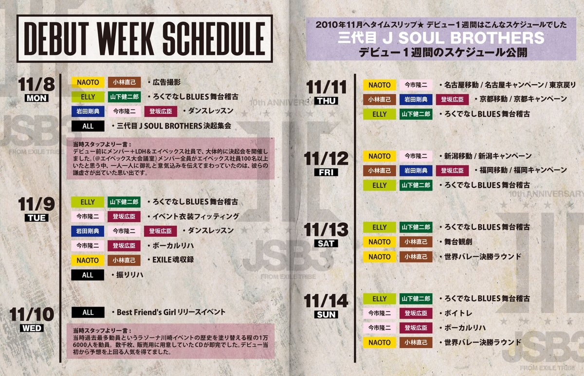 #JSBFESTIVAL D-7🚩 2010年11月へタイムスリップ⏳ 三代目デビュー1週間はこんなスケジュールでした🗒 #三代目JSOULBROTHERS #JSBFESTIVAL #JSBフェスティバル #JSBフェス