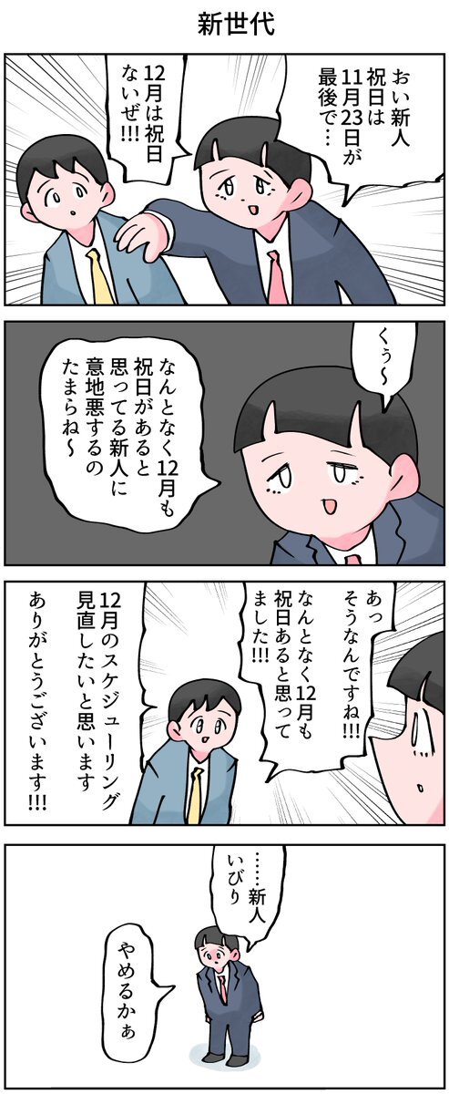 新人いびり。 ―― 「12カ月の仕事模様 byなか憲人 @tokuniaru 」 #ヤメコミ #4コマ漫画 ▼なか憲人さんの漫画を読む tenshoku.mynavi.jp/knowhow/yameco… pic.x.com/M3JDfmQMSh