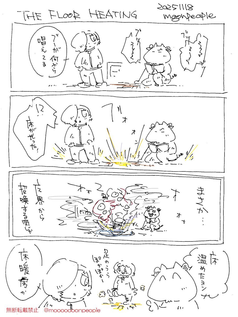 2025.11.18 THE FLOOR HEATING「床暖房」 寒い日は床暖房でぽかぽかしよ。 #4コマ漫画 #創作漫画 #コメディ #漫画が読めるハッシュダグ pic.x.com/TSzZAKdExQ