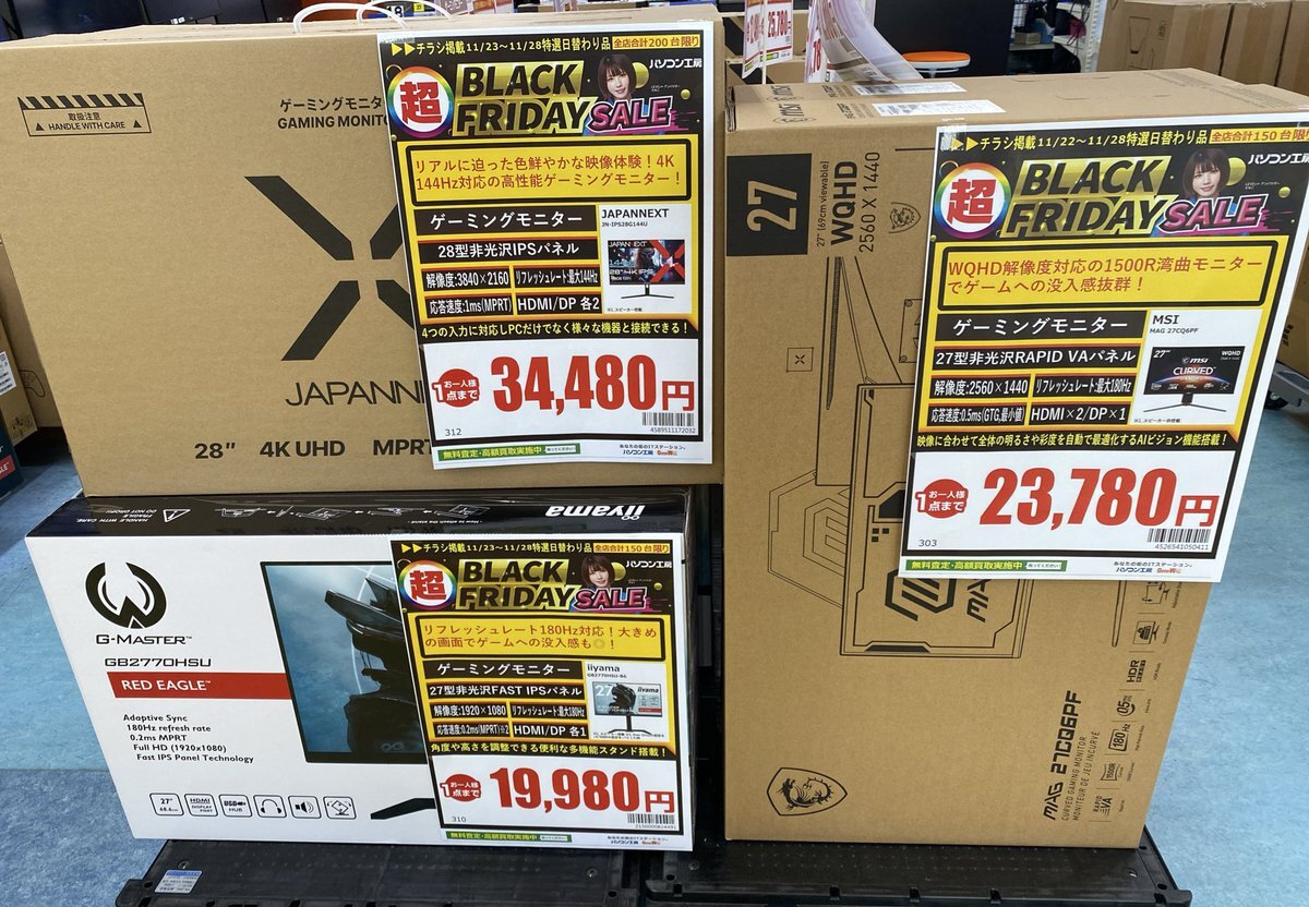 超 #ブラックフライデー セール‼️ お得な #ゲーミングモニター を一部ご紹介🎉 ⭐️JAPANNEXT 28インチ IPSパネル #4K 144㎐対応 スピーカー搭載 ⭐️MSI 27インチVAパネル #WQHD 180㎐対応 #AIビジョン 搭載 ⭐️liyama 27インチ IPSパネル FullHD 180㎐対応 スピーカー搭載 #パソコン工房 #鹿児島 pic.x.com/6w6BznsNb1