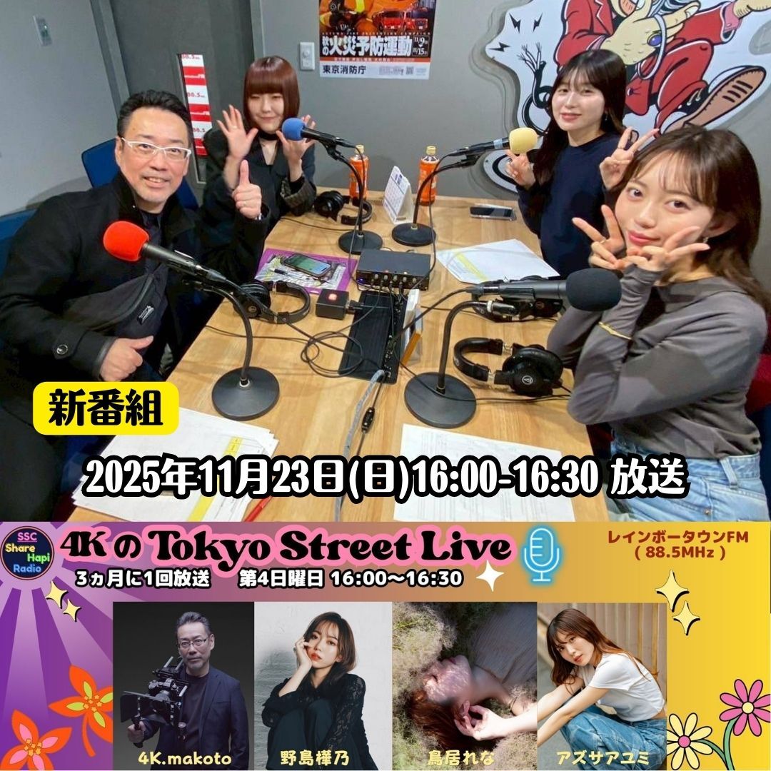 11/23(日)16:00-16:30放送 新番組 『4KのTokyo Street Live』 ・・・・・・・・・・・・・・ 人気急上昇中の若手アーティストから これからメジャーになるであろうアーティとを 同じ世代のアーティストと深掘りする トーク&音楽番組 ・・・・・・・・・・・・・・ パーソナリティー #4K.makoto pic.x.com/kmS7biT4y5