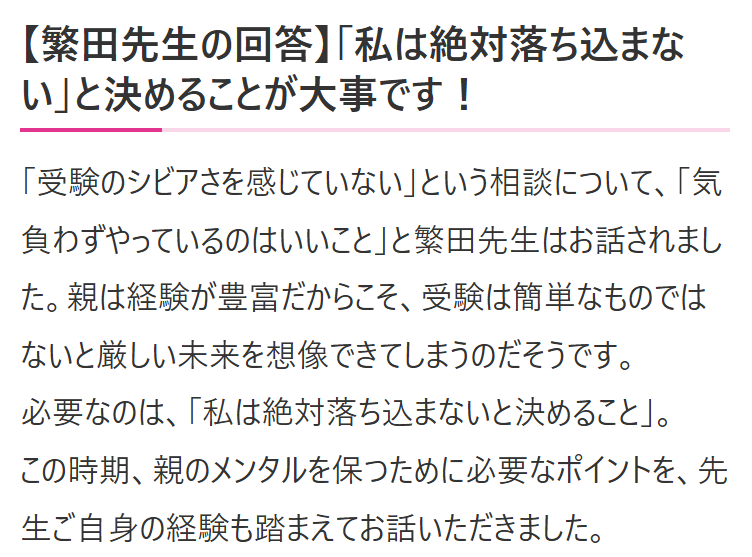 「テストのたびに私が一喜一憂してしまう」 受験直前、親のメンタルは本当に限界…。 でも、“私は落ち込まない”と決めるだけで変わる。 #繁田和貴 先生が語る、親が心を保つためのヒントとは。 #中学受験 #6年生 #メンタル pic.x.com/uXmiZF8JCp