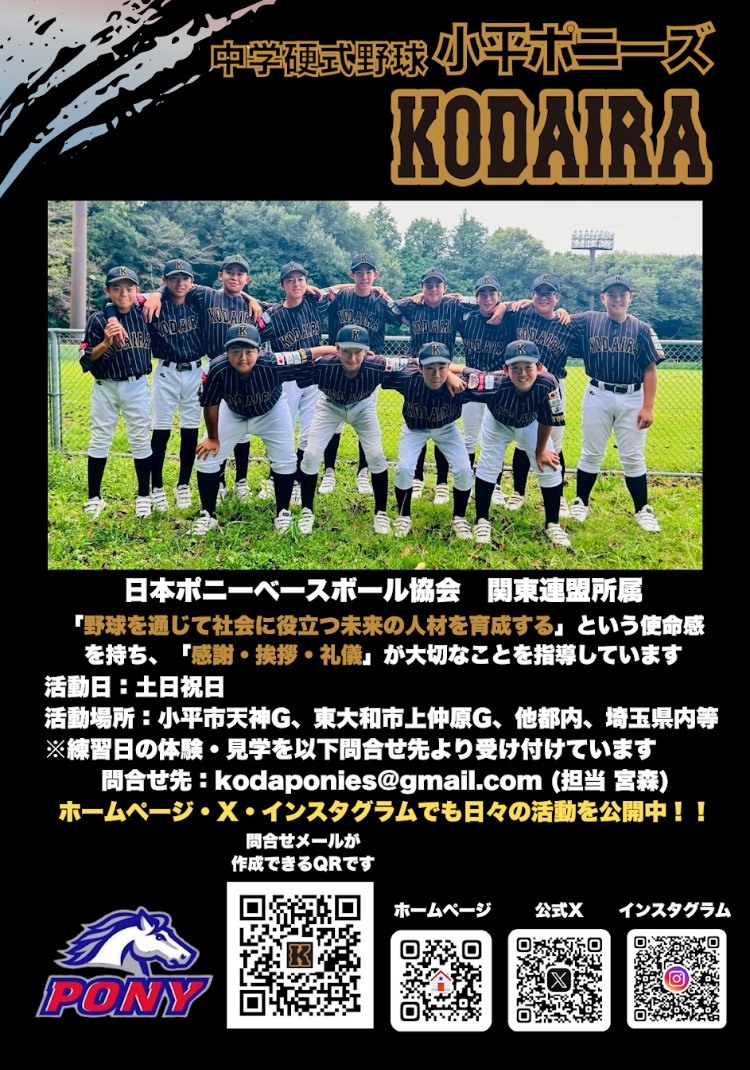 小平ポニーズ|中学硬式野球(ポニーリーグ)@KODAIRA_PONY