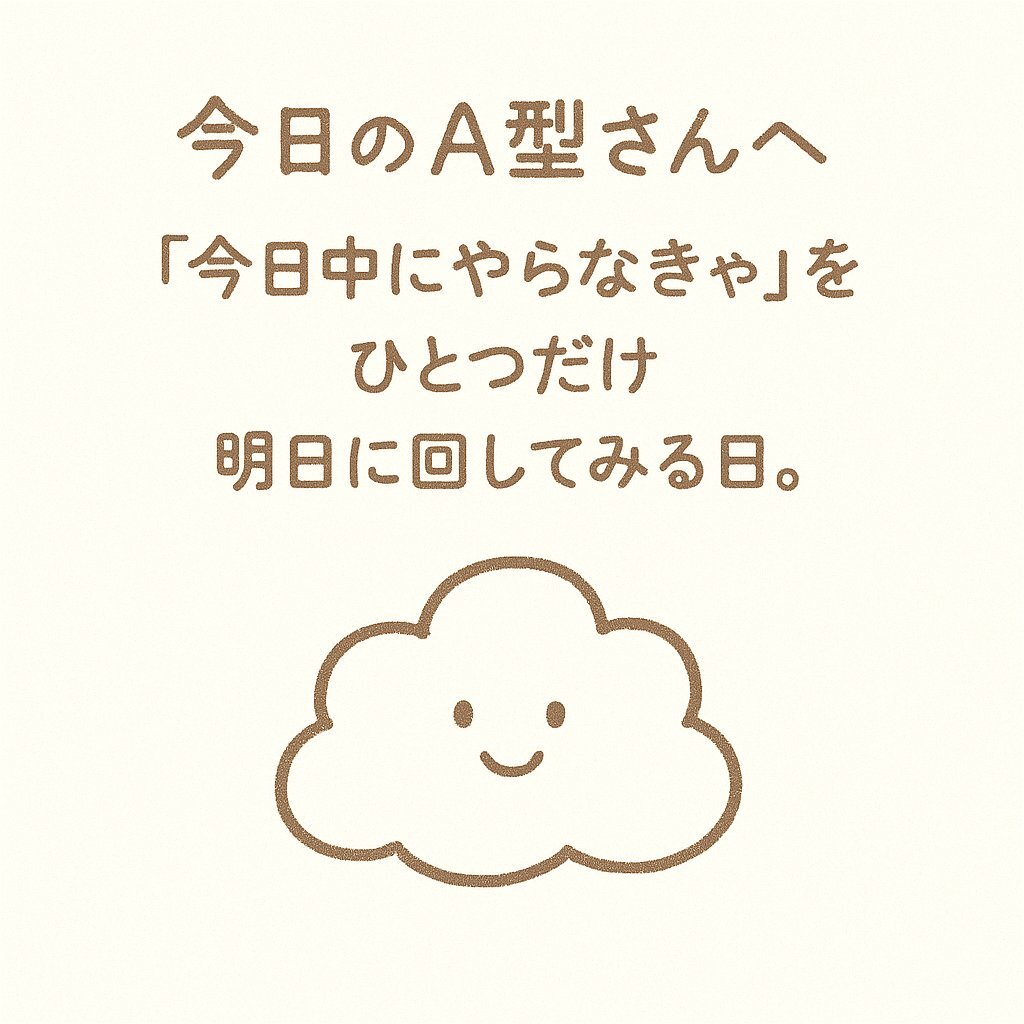 今日のA型さんへ ☁️ 「今日中にやらなきゃ」をひとつだけ、明日に回してみる日。 予定のぎっしり感より、心に空白をつくる練習。 私は、ちゃんとしすぎないA型さんも好きです。 #雲の占い #A型 pic.x.com/ovXBdmgl01