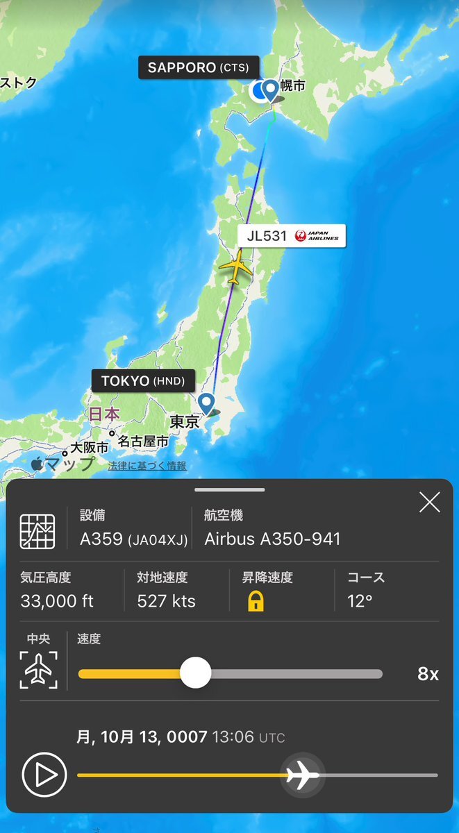 昨日のフライト HND〜CTS (区間マイル:510) JL531 ファーストクラス A350-900(JA04XJ) #JAL #A350 pic.x.com/C6OIsSUOfx