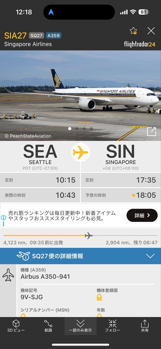 夜中に目が覚めて、飛行機の音がしたのでレーダー見てみると初めて見る可愛い塗装機でした🤗