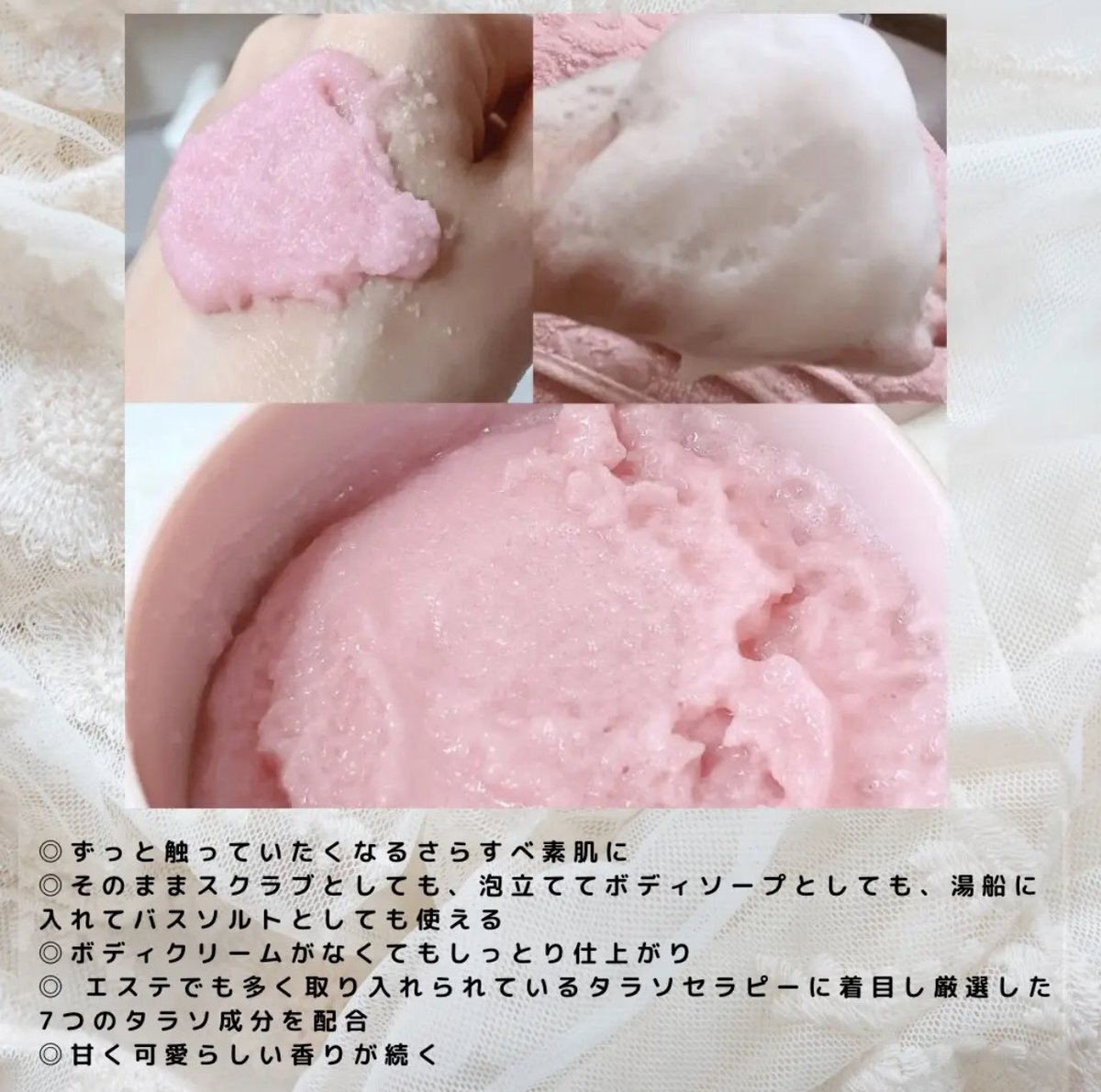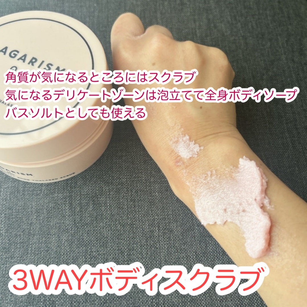アガリズム(@agarism_jp) ボディスクラブ スクラブ•ボディソープ•バスソルトと3way使用🩷少し硬めでもっちりとした粘土のあるテクスチャー。週1回二の腕やヒップに使っています🍑めっちゃつるつるになる!女の子らしいフルーティフローラルの香りも癒される💐🫧 #PR #AGARISM #キューミースクラブ pic.x.com/WGhcAv46X6