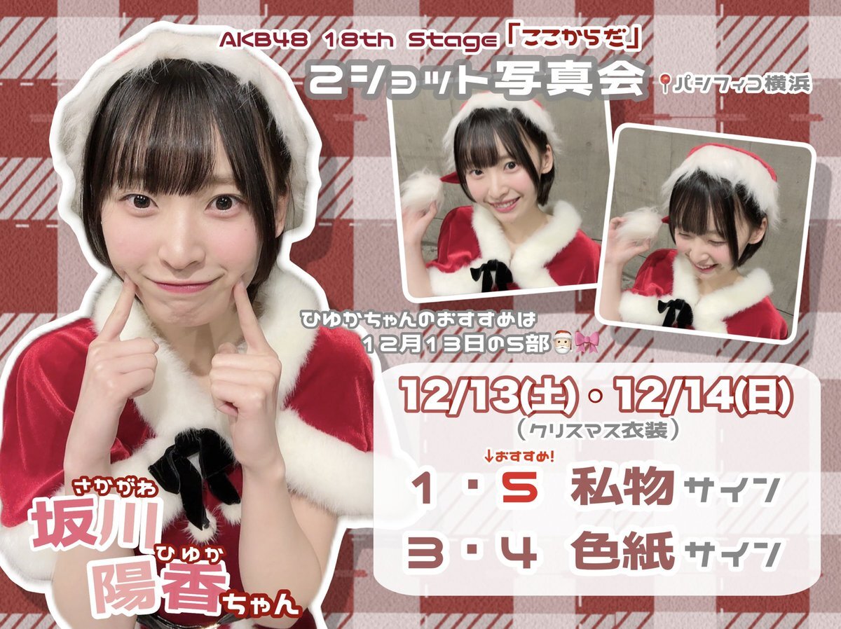 #ここからだAKB48 AKB48 18th Stage 「ここからだ」2s写真会 \ \ 12/13(土)・12/14(日) 最終受付 / / #坂川陽香(@Hiyuka_1007 )ちゃん と一緒に素敵な思い出作りませんか?🎄♥️ 第5販売受付中! 🔗official-cd.akb48.co.jp/akb48-18thstag…