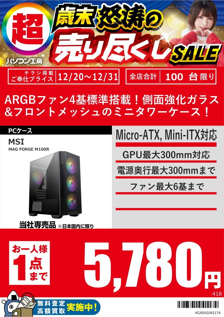 各種PCケースが12/31までセール中🌟 クリスマス&年末年始に自作PC製作、いかがですか?(。-`ω-)✧ #MSI #ASUS #自作PC #冬休み pic.x.com/ASafUeK5o5
