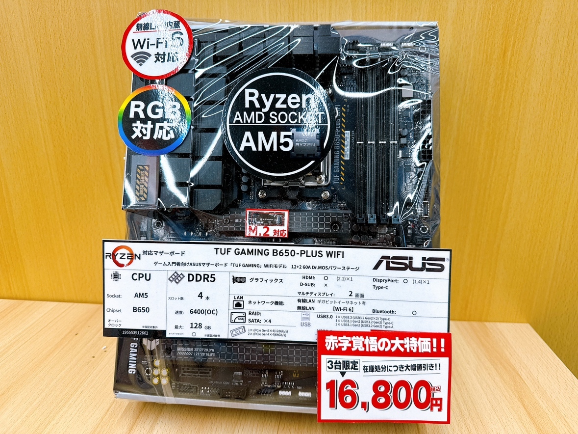 こんばんは🌛 #アプライド久留米店 です🏋️‍♂️ 久留米店限定でマザーが安い‼️ @ASUSJapan のB650(無線WiFi機能付き)🔧 在庫限りなのでご検討中の方はお早めに🦵🏃 気になった方は3Fワゴンコーナーまで🙌 #アプライド #ゲーミングPC #ASUS pic.x.com/VbZ0K1BWtS