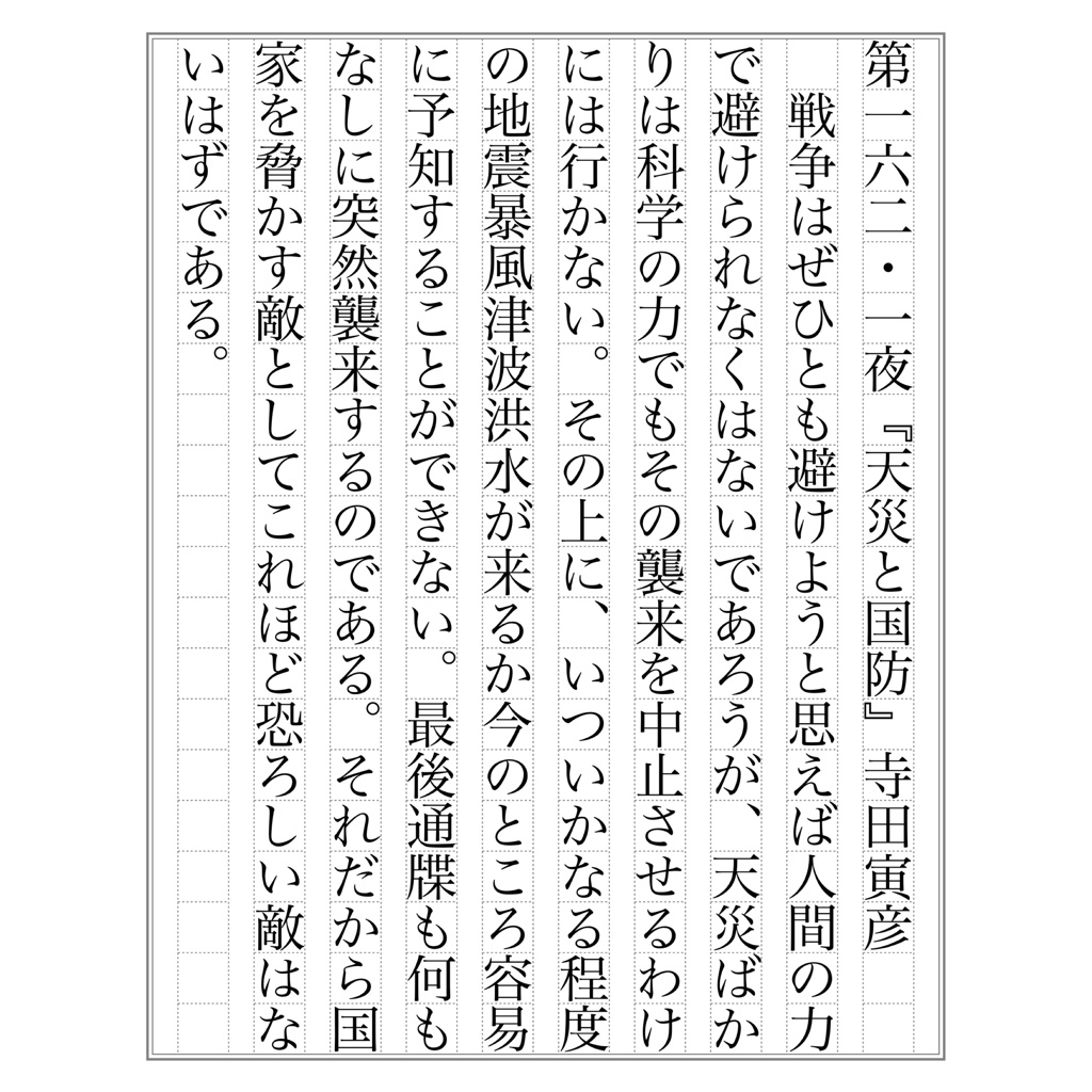 #吾輩ノ書写デアルナンバー9 第 162.1 夜『天災と国防』寺田寅彦 「戦争はぜひ避けようと思えば人間の力で避けられなくはないであろうが、天災ばかりは科学の力でもその襲来を中止させるわけには行かない。」