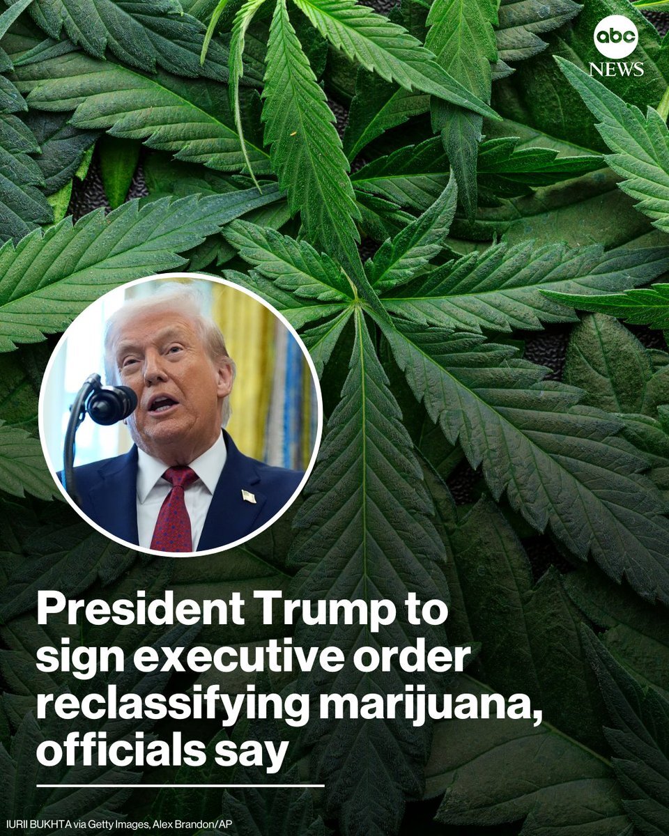 Pres. Trump is expected to sign an executive order as soon as Wednesday that will reclassify marijuana to a Schedule III drug, effectively easing federal restrictions on the drug, according to two senior administration officials familiar with the matter. abcnews.link/PNczgB0