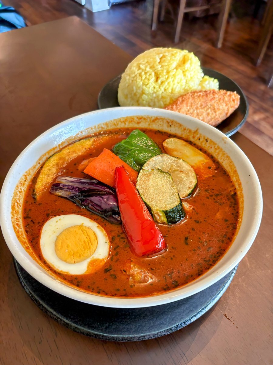 ランチはこちら💁♂️ 骨付🦵🍗のスープ🍛スープ大盛¥50 クーポン🐟フライ(-¥100) 🍚は100g〜400g 無料の🌶️は0倍〜10倍以上選択可能 ここは一発やってやりましょう😎 🍚400g🌶️20倍を注文 でっかい🦵🍗と茹で🥚 🥦7種は新鮮張りがあって◎ 🍗も味染みホロホロ◎ これで¥1,030paypayポイント付いて👍 #ANNIE pic.x.com/79JS6bp4GF