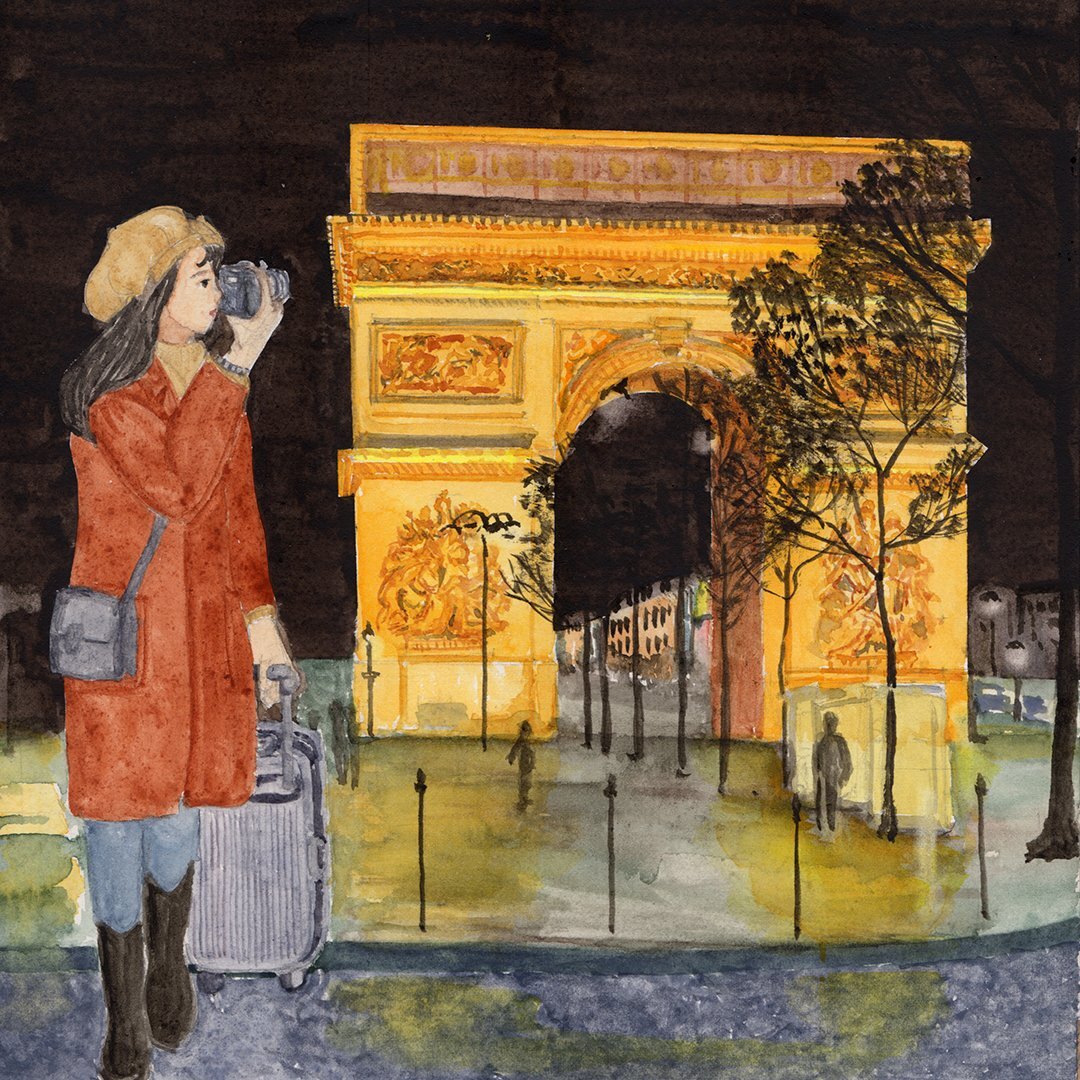 Arch de Triump (凱旋門) 〈パリのABCシリーズ:A〉 パリを背景に女の子の絵を描きます。 アルファベット26文字から始まる単語をテーマにした連作です。 #Arch of triumph #凱旋門 #水彩画 pic.x.com/aft7QJPj8d