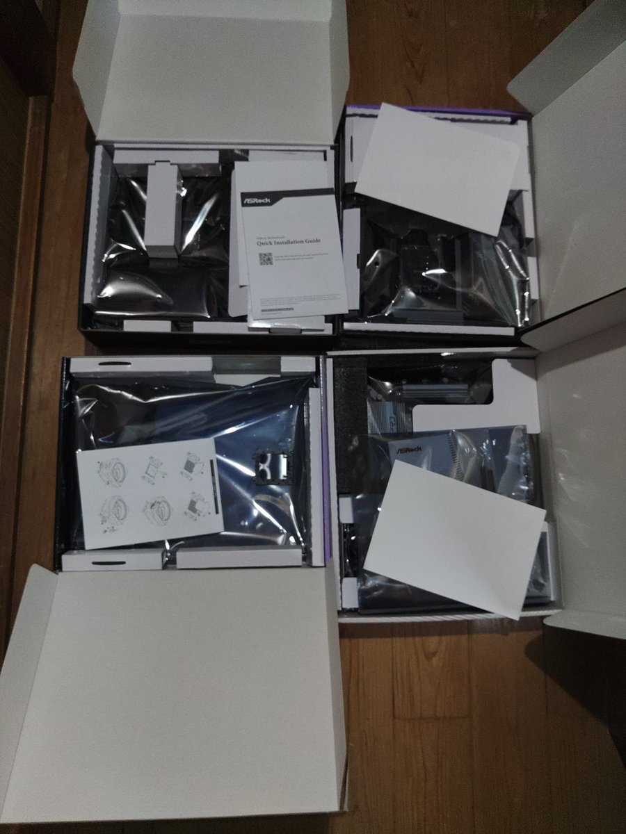 とうちゃんよー まぁオイラも買い物好きだし100歩譲って買うのはいいけどさぁ~ 買ったら組めよ!!www 時間が無いって言い訳すんなしw 組んであるのはB850だけやんかw #ASRock