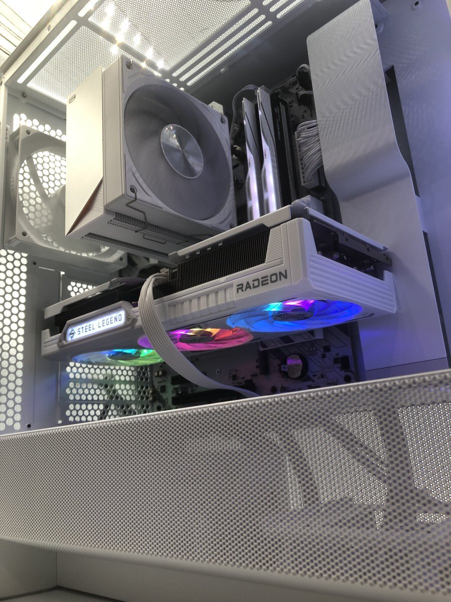 RTX3060(8GB)から RX9060XT(16GB)に乗り換え。 DeskMeetで使用してたからシングルファンだったけど 3連ファンはええのぉ。 ケース内の雰囲気がかっこよくなった。 マザボもSteel Legendだからなおいい感じ。 #自作PC #ドスパラでこれ買った #ASRock pic.x.com/qM0bWNXCaj