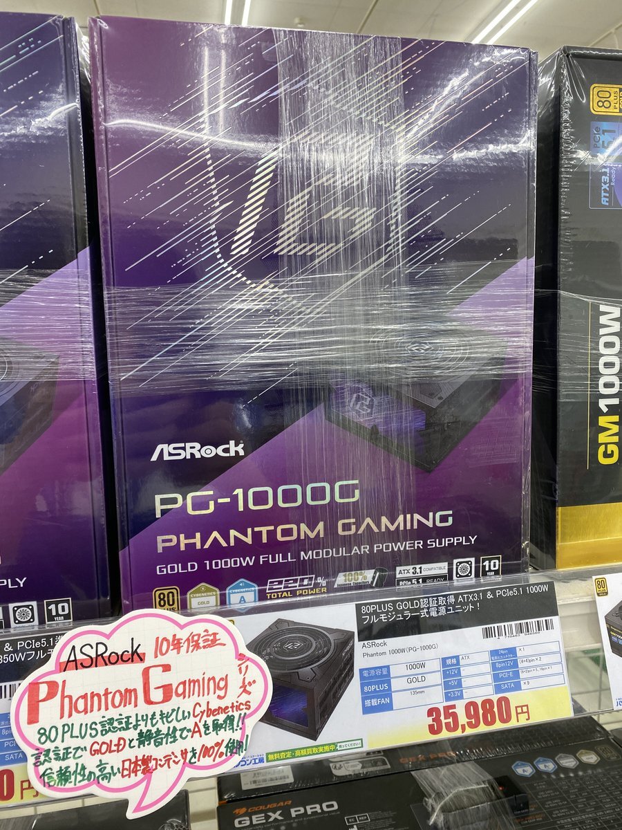 【再入荷💁‍♂️】 #ASRock Phantom Gaming PG-1000Gが店頭に再入荷しました‼️ 80PLUS認証よりも評価が厳しいCybenetics ETAはGOLD、同LAMBDAでは静音性の高いAクラスの認証を取得している高評価な電源ユニットです👨‍🏭 #パソコン工房 #豊田市 #尾張旭市 pic.x.com/HMgKcAFIpK
