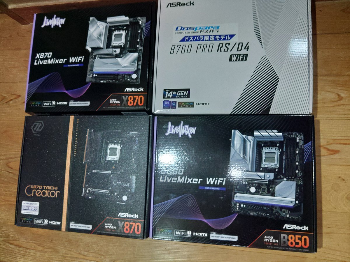 素人の予測ですが ・B850 MPOWER  ボーナス商戦頃に  日本市場投入  その予兆として  MSI の既存M/Bが  不思議な価格変動を ・X870E Taichi OCF  年末に電撃登場  ただし9800X3D問題の  推移次第 PCパーツのマーケティングって ホントに水物みたいだから #MSI #AsRock