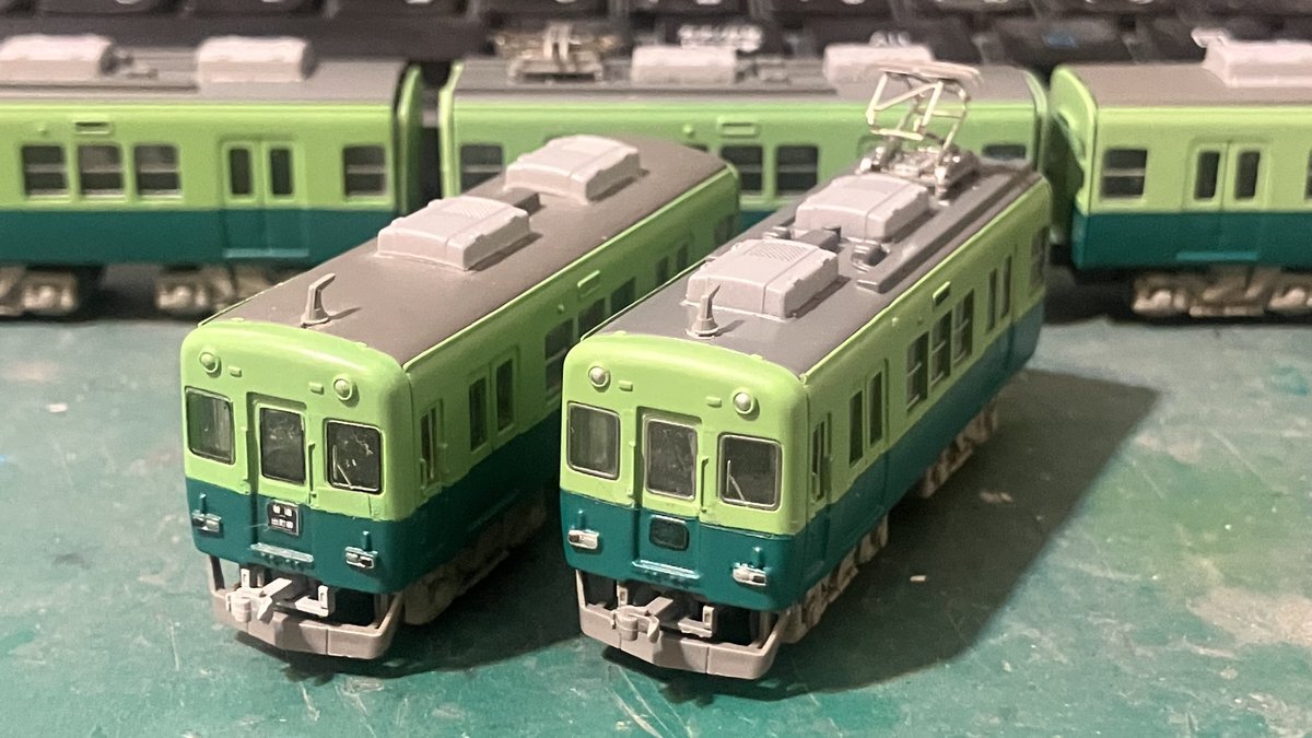 #Bトレ #ショーティーは不滅なり 余り物で作る京阪2600系30番台旧塗装。もう片方の先頭車も制作し、ついでにスカートもGM製の物に交換しました。先頭車同士の連結は考慮していないため、ダミーカプラーにしてあります。 pic.x.com/WlLDadW76X