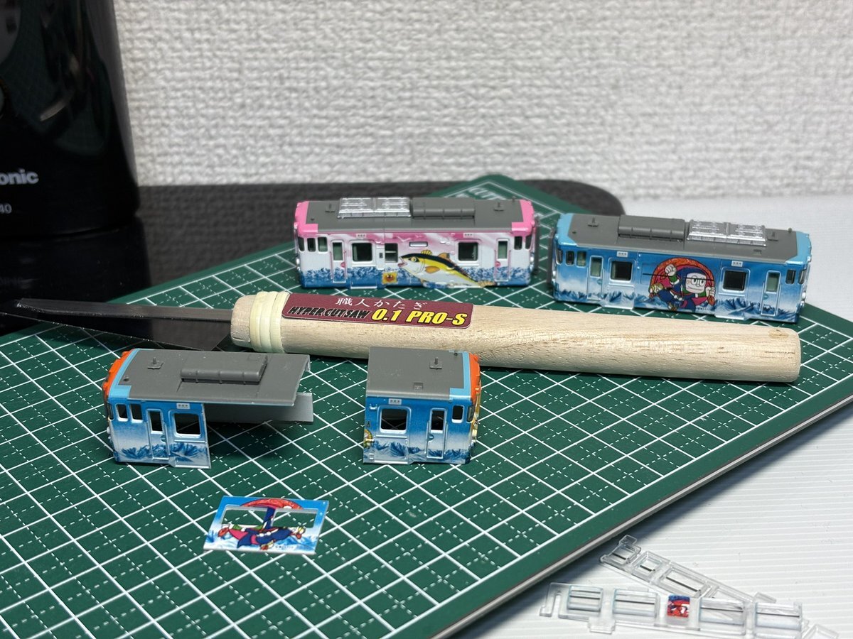 今日はキハ40系2000番台「忍者ハットリくん列車」を作りました🤗 種車は20年前の製品みたいですね🧐 古いマイクロエースの硬めのプラを毎度のハイパーカットソーにて、刃を痛めながら縮めてます🤨💦 #Bトレ pic.x.com/bYN0kFvZiC